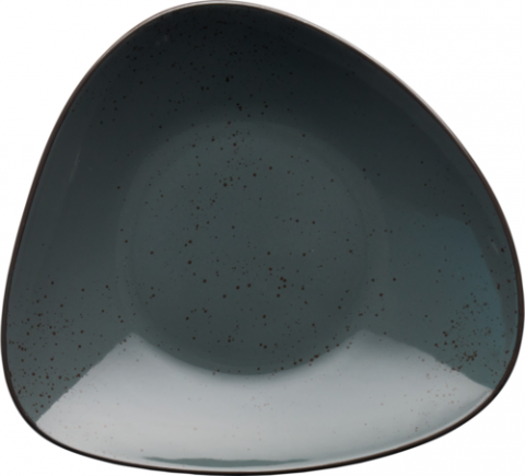 Pasta/Salad Bowl, 10-3/8"D x 1-1/2"H, 32 oz., Organic Triangle, Stoneware Fully Vitrified with hand painted reactive glaze finish, Lunar Blue with Dark Brown Trim and Speckles, Splash™