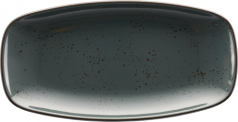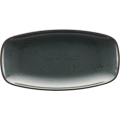 Platter, 11-5/8"L x 5-7/8"W, Organic Rectangle, Stoneware Fully Vitrified with hand painted reactive glaze finish, Lunar Blue with Dark Brown Trim and Speckles, Splash™