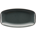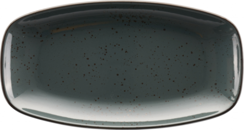 Platter, 13-3/4"L x 7-3/8"W, Organic Rectangle, Stoneware Fully Vitrified with hand painted reactive glaze finish, Lunar Blue with Dark Brown Trim and Speckles, Splash™