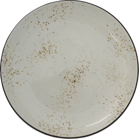 Plate, 10-1/2"D, Round, Stoneware Fully Vitrified with hand painted reactive glaze finish, Crème with Dark Brown Trim and Speckles, Splash™