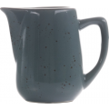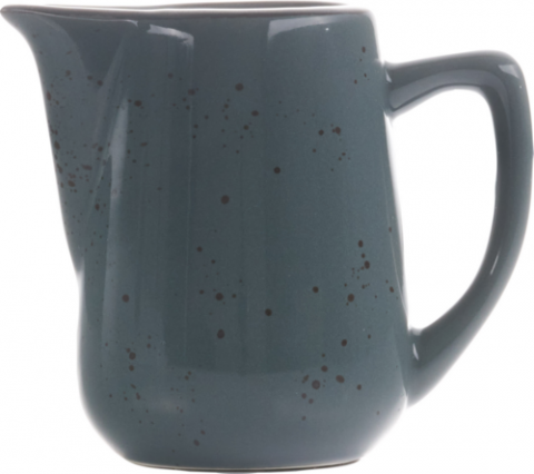 Creamer, 4"D with handle x 3-3/8"H, 5 oz., Round with Handle & Spout, Stoneware Fully Vitrified with hand painted reactive glaze finish, Lunar Blue with Dark Brown Trim and Speckles, Splash™