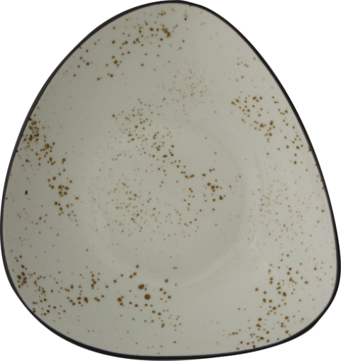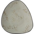 Pasta/Salad Bowl Bowl, 9-1/8"D x 1-7/8"H, 20 oz., Organic Triangle, Stoneware Fully Vitrified with hand painted reactive glaze finish, Crème with Dark Brown Trim and Speckles, Splash™