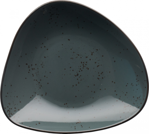 Pasta/Salad Bowl Bowl, 9-1/8"D x 1-7/8"H, 20 oz., Organic Triangle, Stoneware Fully Vitrified with hand painted reactive glaze finish, Lunar Blue with Dark Brown Trim and Speckles, Splash™