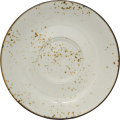 2 Well Saucer, 6"D, Round, Fits SH-56-CR and SH-57-CR Cappuccino Cups, Stoneware Fully Vitrified with hand painted reactive glaze finish, Crème with Dark Brown Trim and Speckles, Splash™