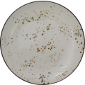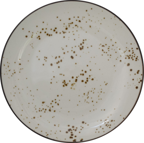 Plate, 7"D, Round, Stoneware Fully Vitrified with hand painted reactive glaze finish, Crème with Dark Brown Trim and Speckles, Splash™