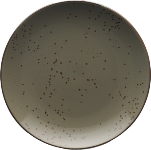 Plate, 7"D, Round, Stoneware Fully Vitrified with hand painted reactive glaze finish, Green Smoke with Dark Brown Trim and Speckles, Splash™