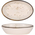 Splash™ Oven Baker, 6-3/8"L x 4-1/4"W x 1-5/8"H, 10 oz., oval, stoneware fully vitrified; crème with dark brown reactive glaze trim & speckles