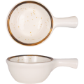 Splash™ Soup Crock, 5"D x 2-1/4"H, 8.5 oz., round, 7-3/8"D with handle, stoneware fully vitrified, crème with dark brown reactive glaze trim & speckles