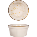 Splash™ Ramekin, 3-5/8"D x 2"H, 4 oz., round, fluted, patterned profile, stoneware fully vitrified, crème with dark brown reactive glaze trim & speckles
