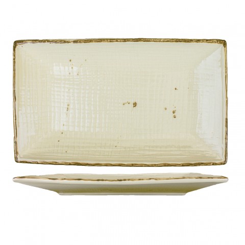 Platter, 12-1/4" x 7-3/8", rectangular, embossed, speckled, rolled edge, fully vitrified, microwave & dishwasher safe, lead free, stoneware, khaki, Savannahâ„¢