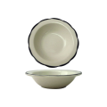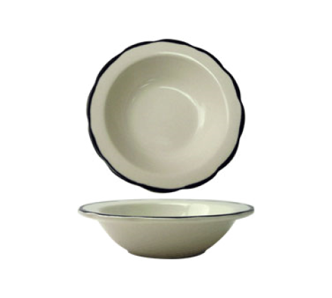 Grapefruit Bowl, 8 oz., 6-1/2" dia. x 1-5/8"H, round, scalloped edge, microwave & dishwasher safe, lead free, ceramic, American White with black band, Sydney™