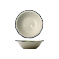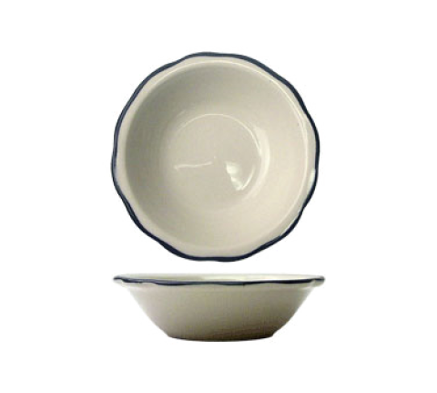 Fruit Bowl, 6 oz., 4-7/8" dia. x 1-3/8"H, round, scalloped edge, microwave & dishwasher safe, lead free, ceramic, American White with black band, Sydney™