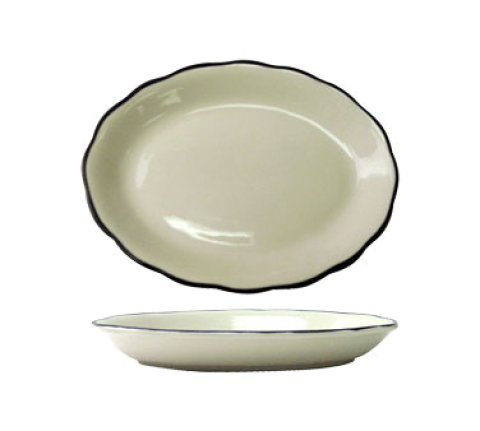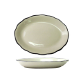 Platter, 12-3/4" x 9-1/4", oval, scalloped edge, microwave & dishwasher safe, lead free, ceramic, American White with black band, Sydney™