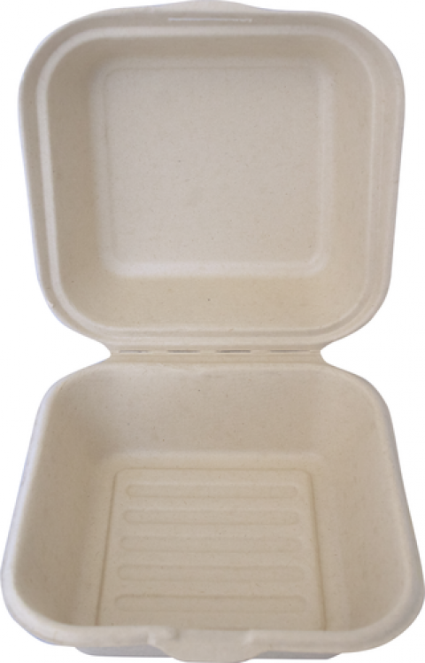 Container, Sugar Cane, natural, square, hinged lid, 1-Compartment, 6" x 6" x 3", microwave safe (500 each per case) (Promotional NET price, effective 09/01/2025)