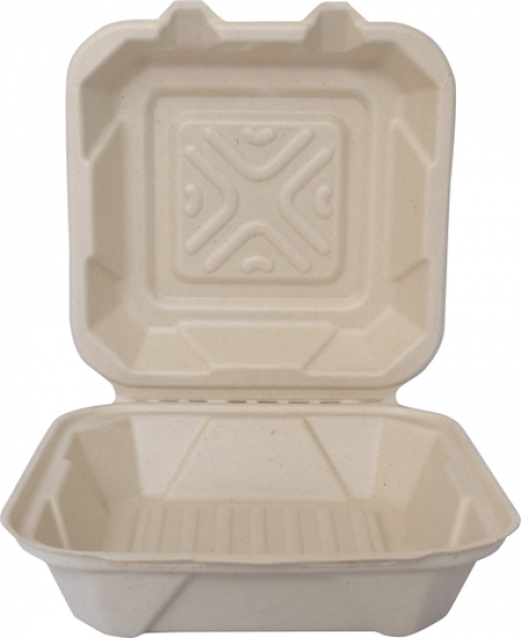 Container, Sugar Cane, natural, square, hinged lid, 1-Compartment, 8" x 8" x 3", microwave safe (200 each per case) (Promotional NET price, effective 09/01/2025)