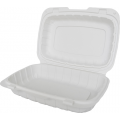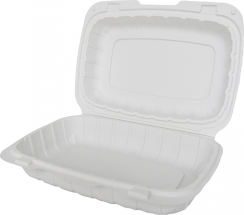 Container, Plastic, white, rectangular, hinged lid, 1-Compartment, Microwavable, dual bar locks, non-absorbent, 9”L x 6-1/2”W x 2-7/8”H, 40g (200 each per case) (Promotional NET price, effective 09/01/2025)