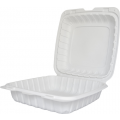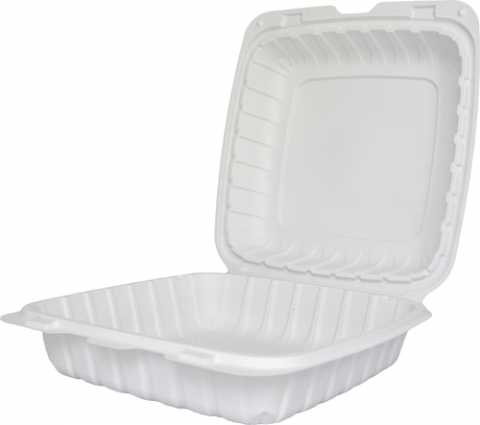 Container, Plastic, white, square, hinged lid, 1-Compartment, Microwavable, dual bar locks, non-absorbent, 9" x 9" x 3", 60g (150 each per case) (Promotional NET price, effective 08/22/2022)