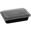 Container with clear lid, 7-7/8”L x 5-3/8”W x 1-5/8”H, plastic, black, rectangular, 16 oz., BPA free, dishwasher safe, freezer safe, leak proof, microwavable, stackable, (150 each per case) (Promotional NET price, effective 09/01/2025)