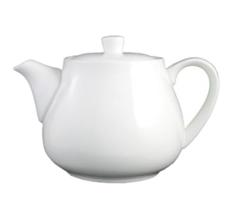 Tea/Coffee Pot, 21 oz., 7" dia. x 4-1/2"H, with handles & spout, with lid, fully vitrified, microwave & dishwasher safe, lead free, porcelain, Bright White