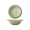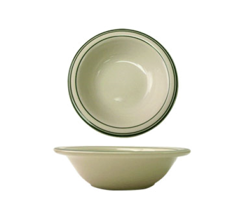 Grapefruit Bowl, 13 oz., 6-5/8" x 1-3/4"H, round, rolled edge, microwave & dishwasher safe, lead free, ceramic, American White with green band, Verona™