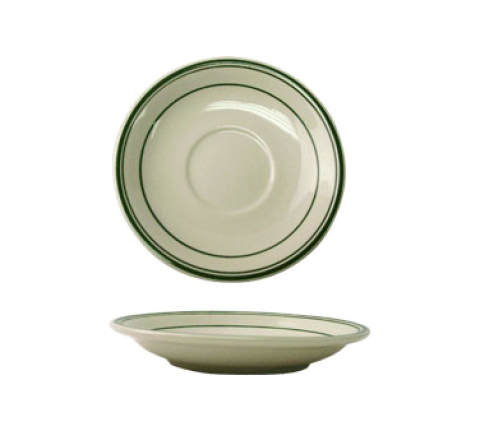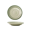 Saucer, 6" dia., round, microwave & dishwasher safe, lead free, ceramic, American White with green band, Verona™ (for VE-1/VE-4/VE-17/VE-23/VE-37)