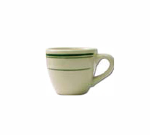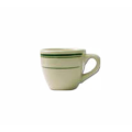A.D. Cup, 3-1/2 oz., 2-5/8" dia. x 2-1/4"H, round, with handle, microwave & dishwasher safe, lead free, ceramic, American White with green band, Verona™