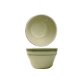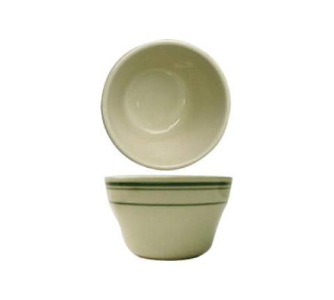 Bouillon, 7-1/4 oz., 4" dia. x 2-3/8"H, round, rolled edge, microwave & dishwasher safe, lead free, ceramic, American White with green band, Verona™