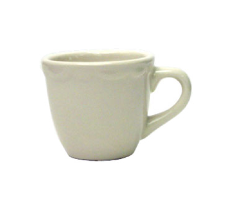 A.D. Cup, 3 oz., 2-5/8" dia. x 2-1/4"H, round, with handle, scalloped edge, microwave & dishwasher safe, lead free, ceramic, American White, Victoria™
