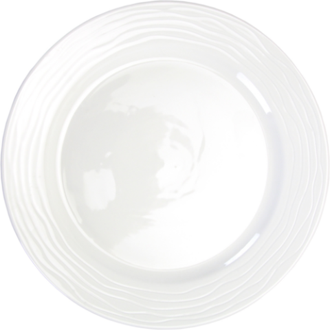 Plate, 11-7/8" dia., Wide Patterned Rim, round, porcelain, Bright White, Wave™