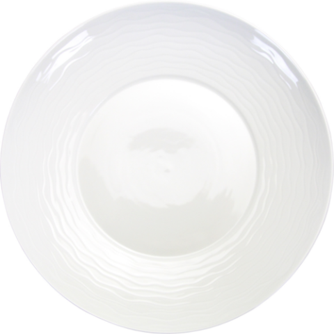 Plate, 11-1/4" dia. x 2"H, Wide Patterned Rim, round, porcelain, Bright White, Wave™