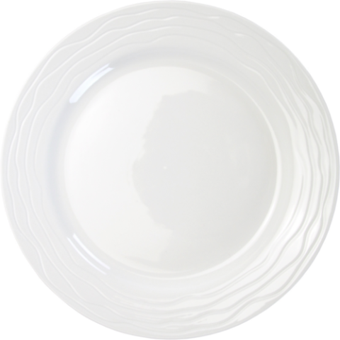 Plate, 9" dia., Wide Patterned Rim, round, porcelain, Bright White, Wave™