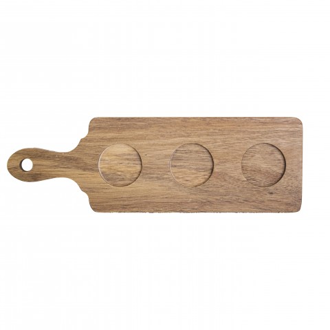 Serving Board, 13-1/4"L x 4-1/2"W, (3) Indented Circle 1-7/8"D, rectangular, double-sided, with handle, hand wash only, acacia wood, brown (fits FA-402)