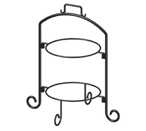 Plate Stand, 2-tier, 17-1/4" x 13-1/2" x 19-1/2"H, 9" round, with handle, wire iron, black, Buffet (KD) (fits DO-211/RB-103/WB-210)