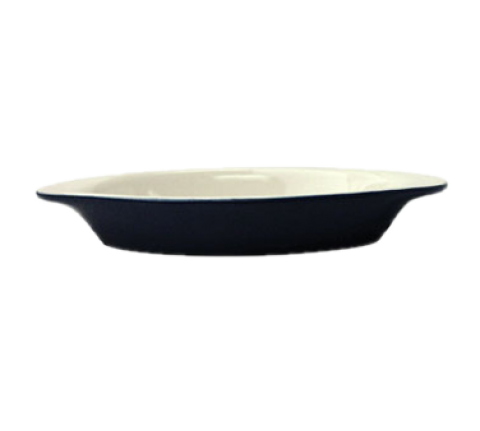 Welsh Rarebit, 8 oz., 8-1/2" x 4-1/8" x 1-1/4"H, oval, two-tone, with handles, fully vitrified, oven/microwave/dishwasher safe, oven safe to 450°F, lead free, stoneware, European White inside/black outside