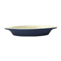 Welsh Rarebit, 8 oz., 8-1/2" x 4-1/8" x 1-1/4"H, oval, two-tone, with handles, fully vitrified, oven/microwave/dishwasher safe, oven safe to 450°F, lead free, stoneware, European White inside/cobalt blue outside