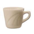 Cup, tall, 6-1/2 oz., 3" dia. x 3"H, round, with handle, embossed, rolled edge, highly polished foot, microwave & dishwasher safe, lead free, ceramic, American White, York™