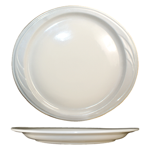 Platter, 10-7/8" x 10", oval, embossed, rolled edge, highly polished foot, microwave & dishwasher safe, lead free, ceramic, American White, York™