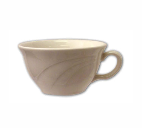 Tea Cup, low, 6-1/2 oz., 3-3/4" dia. x 2-1/8"H, round, with handle, embossed, rolled edge, highly polished foot, microwave & dishwasher safe, lead free, ceramic, American White, York™
