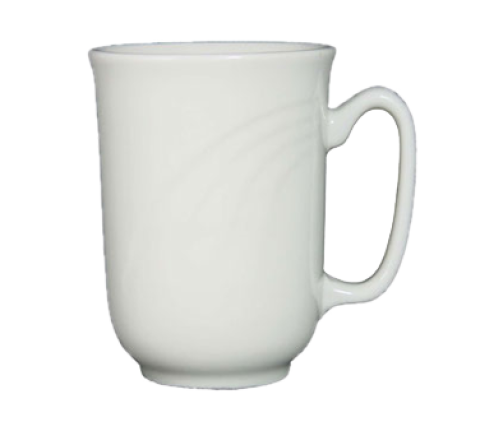 Holland Mug, 9 oz., 3" dia. x 4-1/8"H, round, with handle, embossed, rolled edge, highly polished foot, microwave & dishwasher safe, lead free, ceramic, American White, York™