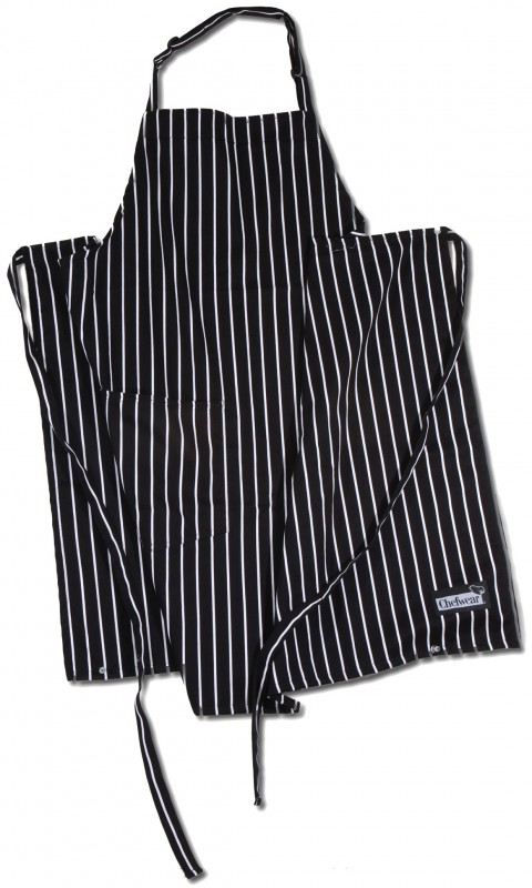 Bib Apron, 39"W x 35"L, 40" ties, (1) pocket, adjustable neck strap, chalk stripe design, 100% cotton, black and white