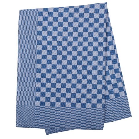 Side Towel, 25-1/2"L x 17-3/4"W, checkered pattern, striped border, 100% cotton, blue (pack of 5)