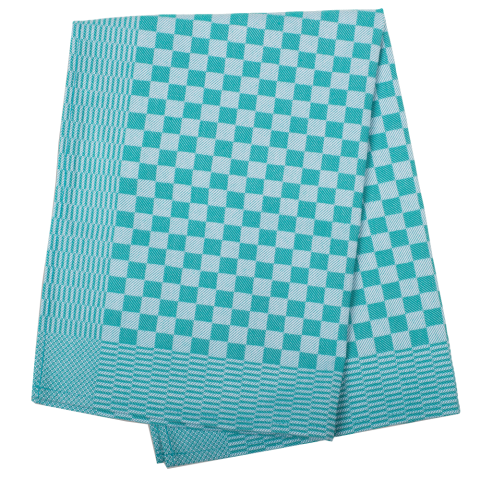 Side Towel, 25-1/2"L x 17-3/4"W, checkered pattern, striped border, 100% cotton, green (pack of 5)