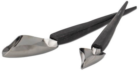 Deco Spoon Set, includes: (1) 7-1/2"L teaspoon, (1) 9"L tablespoon, for writing and decorating plates with sauces, stainless steel, wood handle