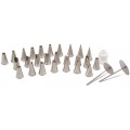 Pastry Tip Set, includes: (1) plastic storage box, (26) assorted tubes, (2) flower nails, and (1) plastic coupling, stainless steel tubes