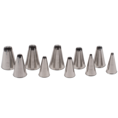 Ateco Pastry Tube Tip, sizes 0- 9, French star, stainless steel (set of 10 pieces)