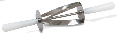 Croissant Cutter, cuts 4-1/2" x 6" sections, small triangles, stainless steel, white plastic handles