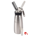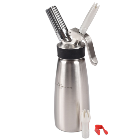 iSi Profi Whip Cream Maker, 12"H, 16 oz. capacity, included: (1) cleaning brush , (1) stopper, and decorating tips (1) tulip tip and (1) star tip, rust proof, removable valve for easy cleaning, dishwasher safe, silicone grip, stainless steel, NSF, HACCP compliant, Made in Austria