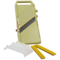 Mr. Slice Deluxe Mandoline, 13-1/2"L x 5-1/2"W overall, 4-3/4" cutting platform, (1) flat blade cuts from 0.5mm to 3.5mm thick, (1) julienne blade cuts 1.0mm 2.5mm and 8.0mm, (1) hand guard included, plastic, green