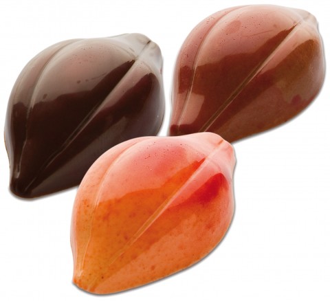 Chocolate Mold, 24 forms, 1-7/8"L x 1"W x 1/2"H (48mm x 25mm x 13mm), cocoa pod shape, rigid, polycarbonate, opaque