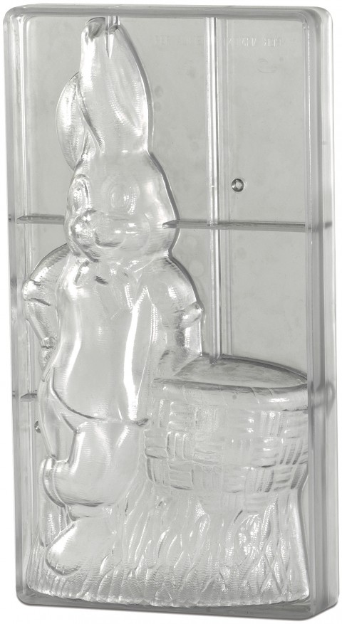 Chocolate Mold, single form, 13-1/2"H, rabbit with basket, rigid, polycarbonate, opaque
